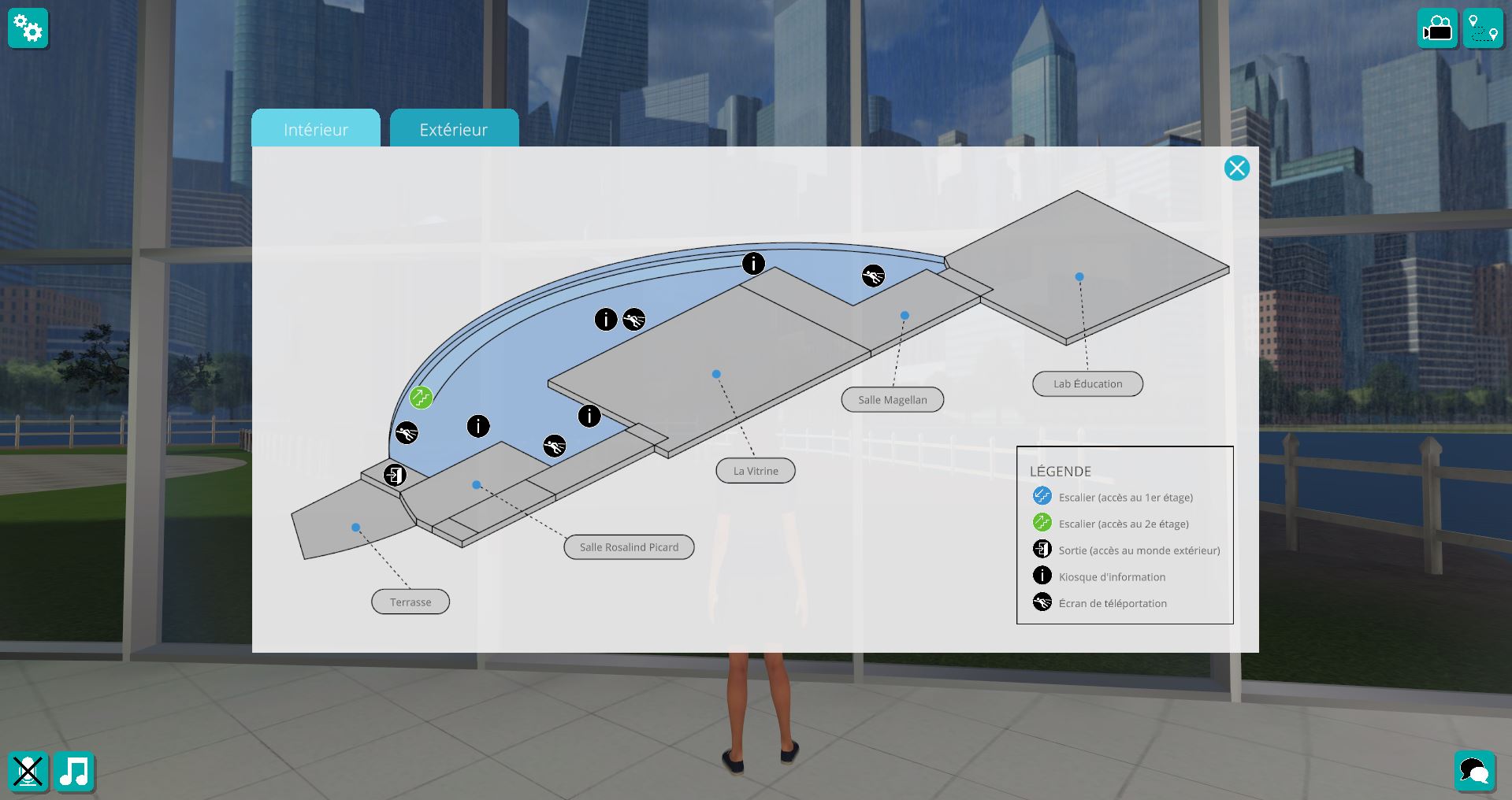 Les utilisateurs sont invités à utiliser leur avatar pour se déplacer, mais ils ont aussi la possibilité d’utiliser un système de téléportation pour passer d’un endroit à l’autre rapidement. Ils peuvent aussi faire un choix de caméra soit à la première personne ou en vue de haut pour une meilleure appréciation du monde virtuel.